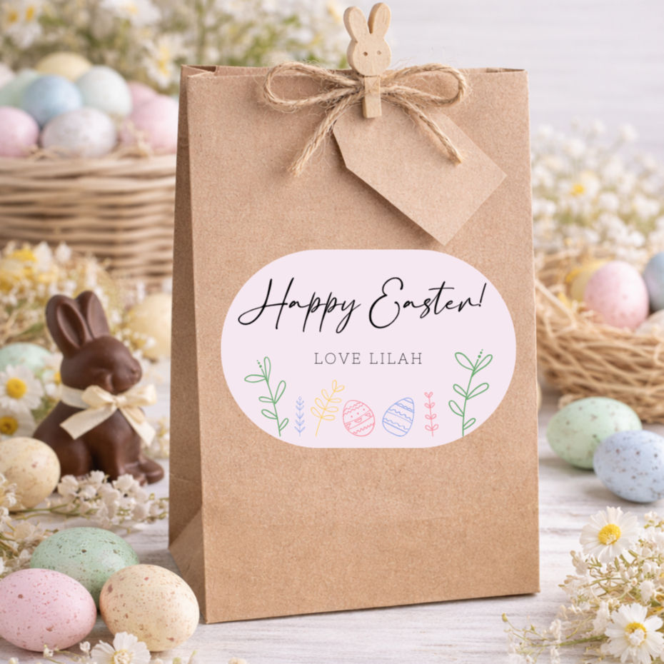 Minimalistic Easter Gift Sticker - Pink
